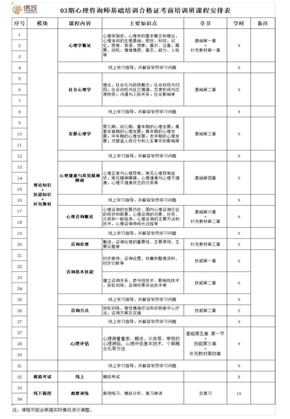 2、心理咨询师基础培训合格证考前培训班课程安排表