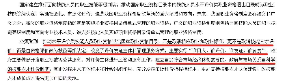 1.水平评价类技能人员职业资格退出职业资格目录有关政策的解读