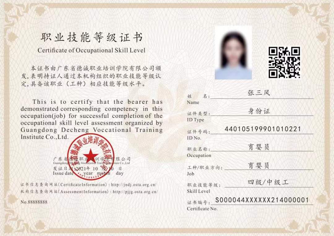 考核合格者,颁发金年会6766签章的“育婴员职业技能等级证书”。该证书可以作为就业、升职、加薪等的凭证。